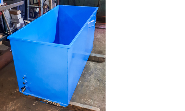 Ванна выполнена для предыдущего объекта - автоклава. Она выполняет сразу две функции - принимает конденсат, а также служит в качестве ванны для предварительного погружения древесных заготовок в горячую жидкость.